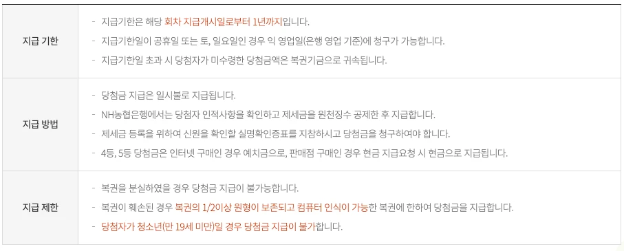 • 4등, 5등 당첨자가 과다하게 발생하여 당첨금이 부족할 경우 별도로 정한 지급률에 의거하여 지급됩니다.