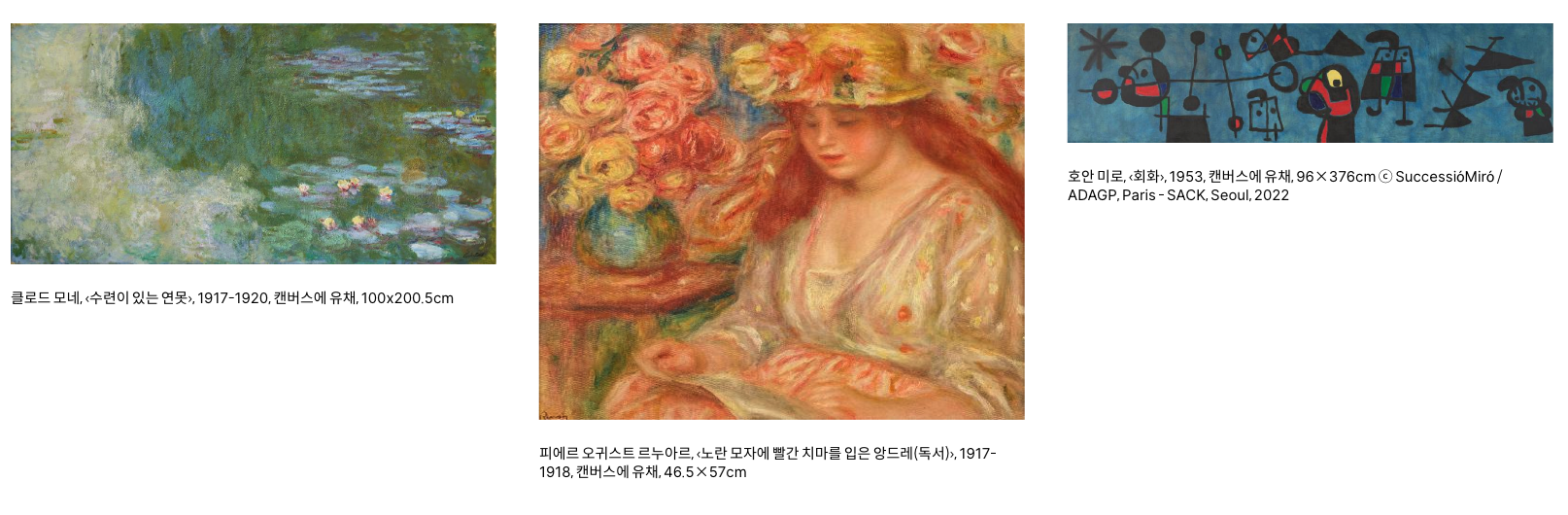 회화 간 관계성뿐만 아니라 피카소의 도자와 다른 거장들의 회화가 어떻게 연관하는지도 살펴보고자 합니다. «MMCA 이건희컬렉션 특별전: 모네와 피카소, 파리의 아름다운 순간들»을 통해 거장들이 서로에게 표현한 우정과 존경의 감정으로 충만했던 파리의 아름다운 순간들을 경험해 보시기 바랍니다.