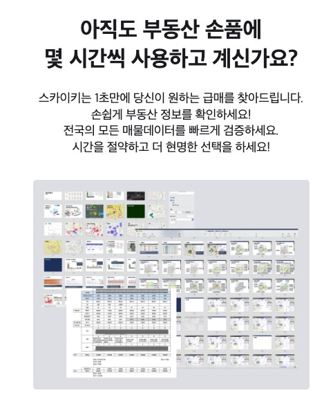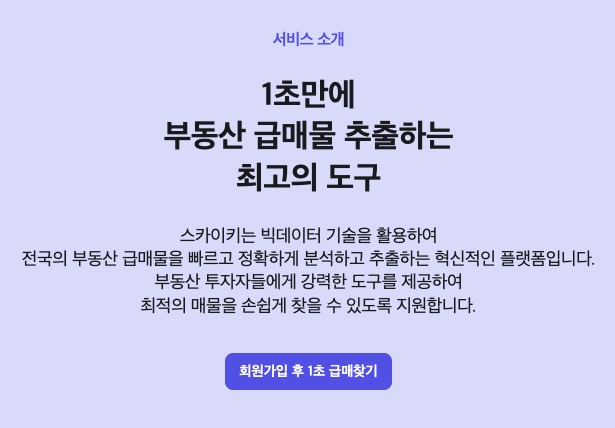 스카이키는 빅데이터 기반 부동산 투자 분석 플랫폼으로, 부동산 시장에서 급매물과 유망 매물을 빠르고 정확하게 찾아주는 서비스입니다.