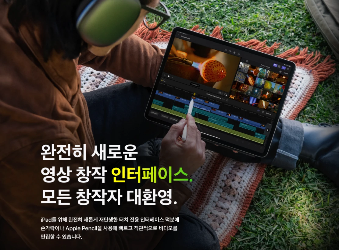 그간 아이패드에서는 개러지밴드와 iMovie 만 사용할 수 있었지만 새롭게 출시된 파이널컷 프로와 로직 프로 덕분에 선택의 폭이 넓어졌다 할 수 있겠습니다.