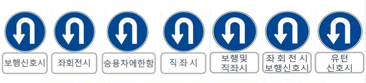 1. 유턴 표지판 아래에 "ㅇㅇㅇ 신호시"라는 문구가 있으면 신호 유턴 표지판입니다.