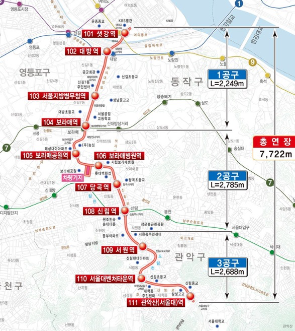 | 주요 경유지 | 샛강역, 대방역, 신림역, 관악산역 |