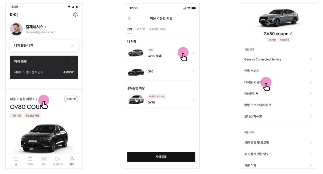 단, 공유받는 스마트폰도 디지털키 지원 조건을 충족해야 하며, 제네시스 커넥티드 서비스 가입이 필수입니다.