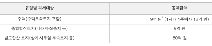9억 원(1세대 1주택자 12억 원)