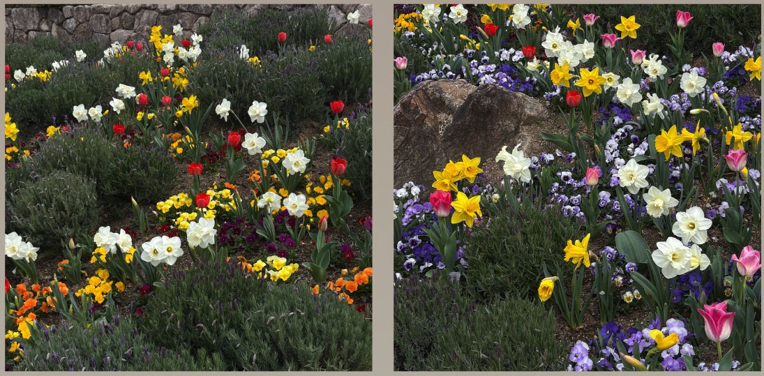 노란 수선화가 테마원을 수놓으며 봄의 생기를 더합니다.